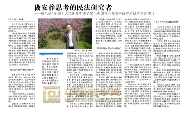 2017年3月,第八届“全国十大杰出青年法学家”名单揭晓,中国社科院法学研究所民法研究室主任谢鸿飞位列其中。