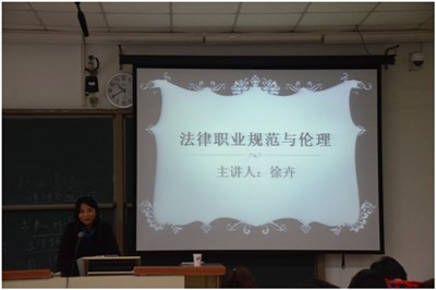 2014年10月31日,法学所公益法研究中心执行主任徐卉研究员应邀在中国社会科学院研究生院给参加法律诊所的学生们作了题为“法律职业规范与伦理”的学术讲座。讲座回顾了法律职业道德的起源、渊源和规范体系,通过经典案例从理论和实践等多方面对法律职业规范与伦理进行了阐释和归纳。在讲座过程中,徐卉研究员与学生们进行了深入的互动交流,同学们踊跃提问、畅所欲言,就中国的法律职业道德现状及其发展前景展开了热烈讨论。